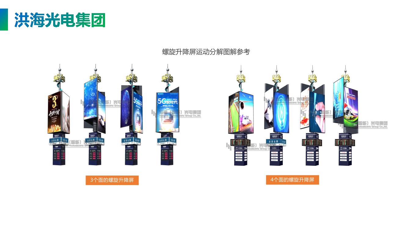 簡單來說就是由三個led顯示屏組成,每個顯示屏都可以獨立上下升降,也可以360度整體旋轉同時播放視頻動畫。和畫面互相配合,是集機械力學、工業(yè)編程和視頻編輯多種功能于一身的新型廣告媒體。